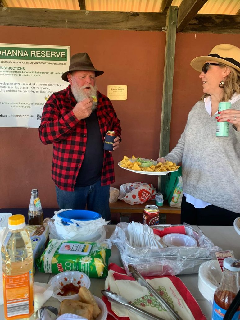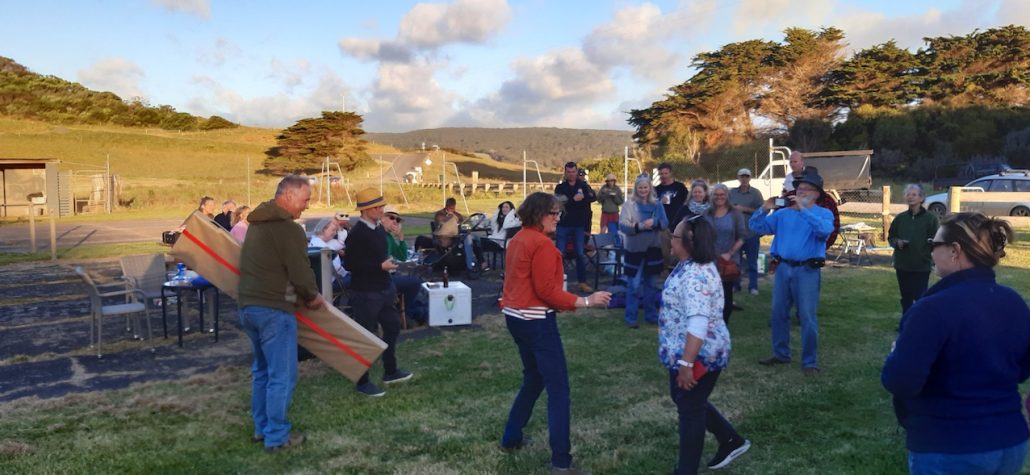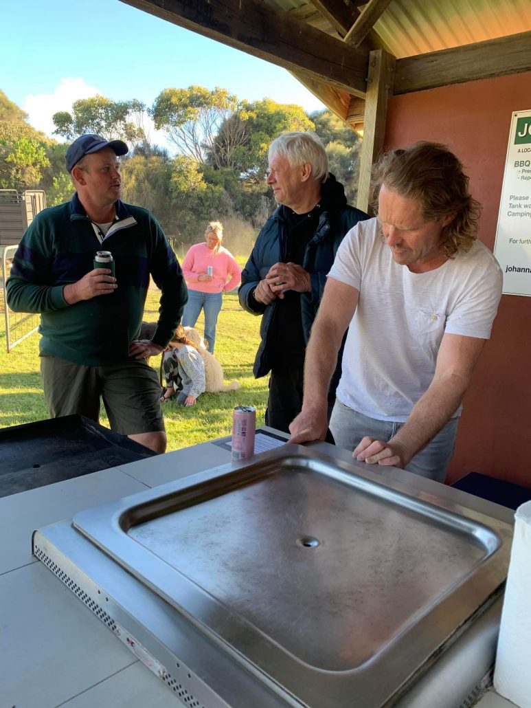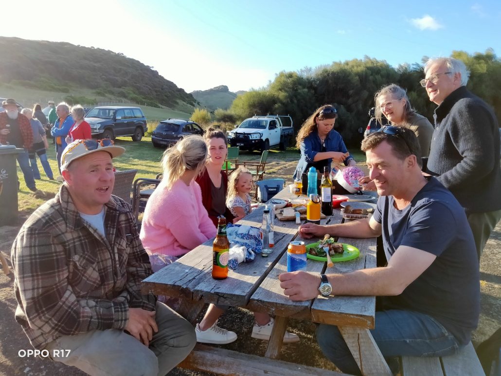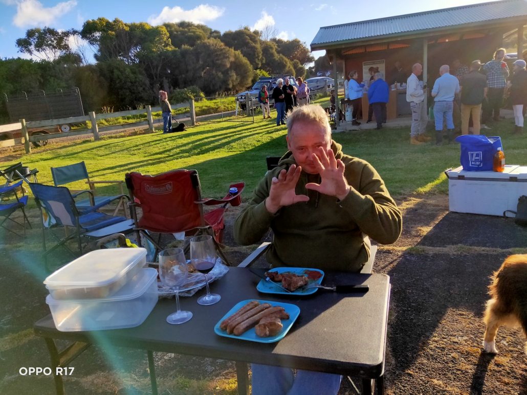 Matt Zurbo. “Why are you taking my photo?” Paul Dwyer enjoying Liz’s guacamole. Ralph and his famous paella. Justin and a very clean barbie. Craig – head honcho – giving a speech. Justin and Katie. Judy, Lisda and Lyn having a laugh. Ron loves his photo being taken! Peter and Paul. A civilised way to eat dinner. Texan Dave and Johnno. Flacky. Sheree and Chris ( Cook ) Paul with Geoff and Wendy. Dr. Anne with Hanna waiting for more cheese. Scott aka Buddy Holly. Linda and Helen listening maybe to Tony. Daniel and Peter. Craig entertaining Tim Jack. Beaut night for a barbie. Catching up. Hanna standing in the leech drain! Perfect weather. Presenting Lisda with her photo of Speight land.